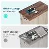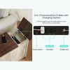 The End Table combines farmhouse charm with modern functionality. Featuring a built-in charging station with 3 outlets, 2 USB ports, and cable grooves, it keeps devices powered and organized. A detachable holder and spacious drawer provide practical storage for remotes, cups, and small essentials. Crafted from sturdy engineered wood with a waterproof finish, smooth metal slides, and durable legs, it’s stylish, functional, and built to last.
