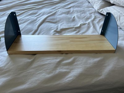 This is an excellent looking shelf. The wood is a high quality piece that is very sturdy. The mounting brackets are a fun light blue color and I really like that I can use them either under or over the wood. This is very easy to mount and un-mount if wanted to move it. The brackets do worry me that they may not hold everything and may give out, but so far so good. Overall a great shelf option.