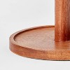 Keep your kitchen supplies stocked and at the ready whenever in need with this Wood Paper Towel Holder from Threshold™. This wooden paper towel holder features a simple circular base with a wooden column that combines style and functionality for your kitchen countertops. Made from wood in a natural finish, this paper towel blends seamlessly with all decor styles, giving your kitchen counter a timeless upgrade.