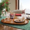 Elevate your dining experience with this Wood Serve Tray with Gold Handle from Threshold™. Made of wood, this oblong tray is ideal for serving various sweet treats, beverages, and other dishes. Plus, it comes with gold-tone side handles that add a glam touch and make carrying the tray a breeze.
