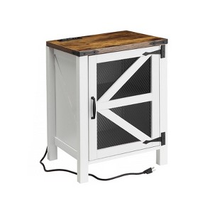 Enhance the charm and functionality of your bedroom or living room with our 18" Farmhouse Nightstand with Charging Station. This versatile piece seamlessly combines rusticwith modern convenience, making it a must - have addition to your home.This country style side table is designed with hollowed out diamond iron mesh. It looks more modern and stylish than traditional rustic, and the movable laminate meets flexible storage space.