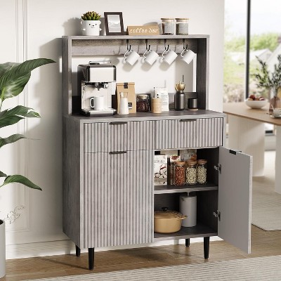 - 🛋️【Multi-Space Adaptability】Serves as a coffee bar, buffet cabinet, or display bookshelf. Seamlessly integrates into kitchens, dining rooms, living areas, or entryways to stylishly organize kitchen essentials.