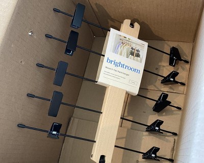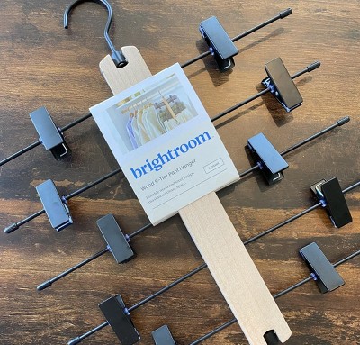 Prevent wrinkles in your freshly-ironed pants with this Space-Saving Pant Hanger from Brightroom™. This pant hanger features metal hangers from a single wooden bar, and it has clip-ons to hang your pants neatly, as well as side loops that allow hanging from a horizontal closet rod.