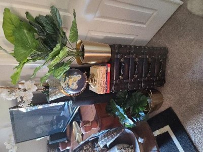 - •Tall accent side chest highlights a black glossy finish with antique gold hardware