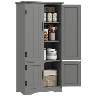 Wood Tall Kitchen Pantry Storage Cabinet with 4 Doors & Adjustable Shelves Farmhouse Freestanding Pantry Cupboard for Dining & Living Room Off White