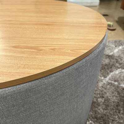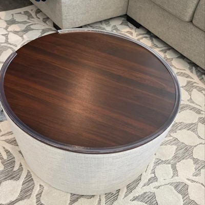 Don’t waste your money. From afar this looks like a really nice ottoman. It’s not. I even ordered a second one in hopes that maybe both would not be damaged but sure enough same terrible quality. The wood tops were both broken and looks like someone tried to super glue it back together. The pressed wood is separating at the seams. A circle top is more like an uneven oval that you have to maneuver to fit the actual ottoman that also has issues. Returned both. BUYER BEWARE!!!!