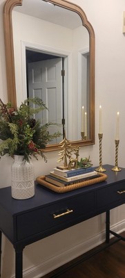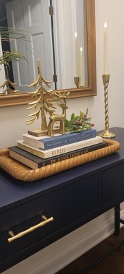 This tray had the perfect dimensions to fit on my entryway console. The wood is a beautiful, warm tone that compliments my decor and the detailed edge gives the tray texture and interest. Get it before it sells out!