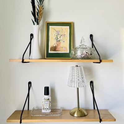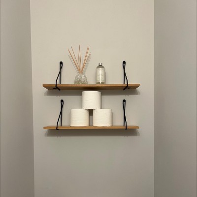 Wood Wall Shelf with Hanging Wire Natural/Black - Threshold™