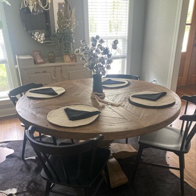 A: Hello Tash - Thank you for taking an interest in this product.The dining chair is constructed from wood for better stability, and showcases a clean-lined silhouette with barrel accents at the curved back to offer a comfortable seating experience. Plus, non-marking feet levelers help prevent scuffs and scratches on flooring. Pair it with matching pieces for a cohesive look, or mix and match it up for a stylish, curated feel. Hope this helps! Happy Shopping - Amy