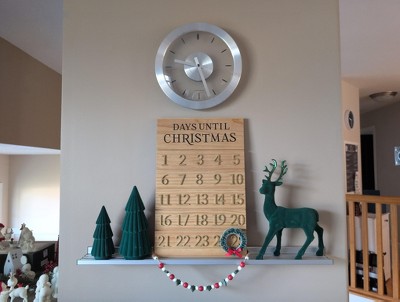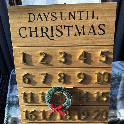 Build the excitement for December 25th with this Christmas Countdown Calendar from Threshold™. Made of wood, this countdown calendar features "Days Until Christmas" text at the top, and it has the dates 1 to 25 in gold font along with a wreath counter to mark the current day. Plus, it comes with a metal easel back for easy placement on any flat surface.