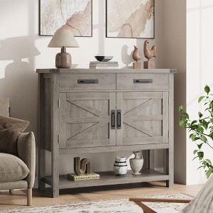 - 【Sturdy and Durable】This console table is constructed from high-quality wood and features a scratch-resistant top, ensuring daily wear and tear. Four reinforced, non-slip feet provide a stable support, preventing sliding or tipping, making it ideal for homes with children or pets. Both drawers and doors feature smooth, gliding rails for effortless, silent opening and closing, ensuring worry-free everyday use and a long-lasting quality guarantee.