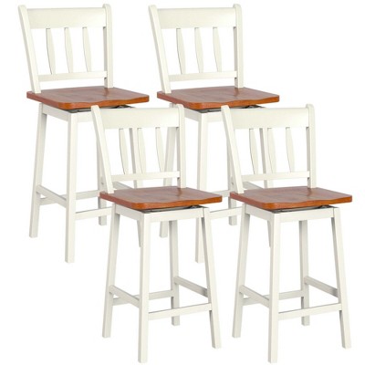 Natural Wooden Counter Stools Set of 2 with Rattan Backrest, 27" Seat Height Bar Stools for Kitchen Island, Dining Room, Breakfast Bar-3irtyhousy