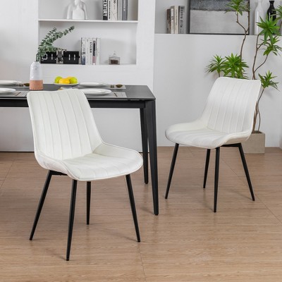 Wooden Dining Chairs Set of 2, Modern PU Leather Upholstered Accent Chairs with Shell Strips, Walnut Bentwood Back and Metal Legs, for Dining Room