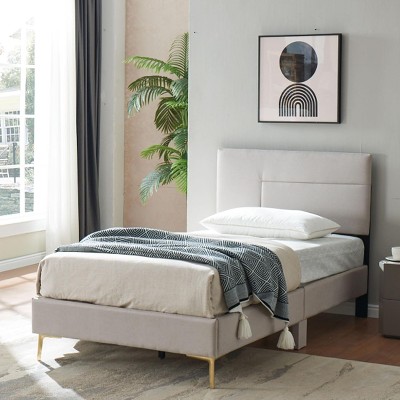Wooden Floor Bed Frame, Kids Low-Profile Floor Bed, Twin Size Bed with Safety Guardrails & Door, Natural - ModernLuxe