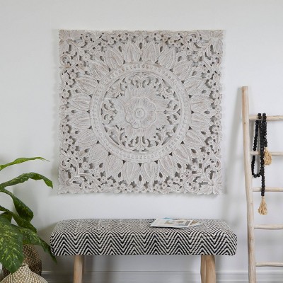 Wooden Floral Handmade Intricately Carved Mandala Wall Decor White - Olivia & May
