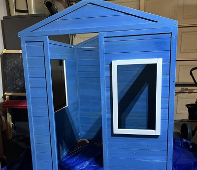 This one star is for the item and target as well. I ordered a natural wood color playhouse and received a blue one for 2 little girls. Of course I didn't know this until I went to out this together Christmas Eve. And the quality is absolutely terrible. Pretty sure the wind could blow it down. Was offered zero compensation from target for ruining one of their big Christmas gifts. Not happy!!!!