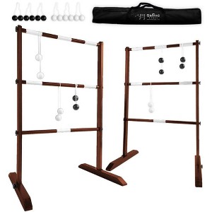 SWOOC Games - Premium Wooden Ladder Ball Game Set (Weather Resistant) - 10 Games Included & Carrying Case - Easy, No Tool Assembly - Ladder Toss