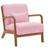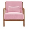 - Designed with a Scandinavian sensibility, this armchair features a solid wood frame in a warm natural finish, gently curved for a soft, welcoming silhouette.