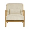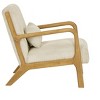 - Designed with a Scandinavian sensibility, this armchair features a solid wood frame in a warm natural finish, gently curved for a soft, welcoming silhouette.