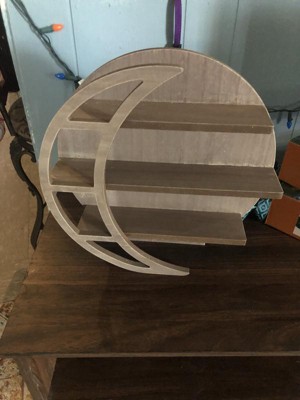 Farmlyn Creek Wooden Crescent Moon Wall Shelf, Rustic Wall Home Decor for Crystals & Essential Oils, Black, 12 x 12 x 3 In
