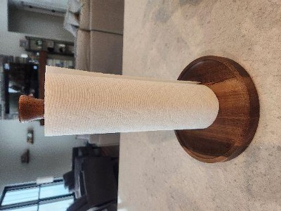 A: Hi Elllie - Thank you for reaching out to us with your query about the Wooden Paper Towel Holder Brown - Hearth & Hand. The Holder comes with a round base with raised sides to easily hold the paper towels and for it to be sturdy when the towels are taken. I hope this information was helpful. Happy Shopping! - Josh