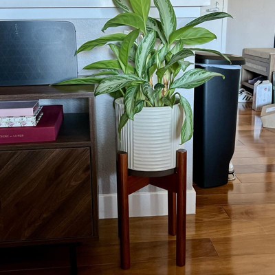 this plant stand is sturdy and elevates the room. paired with an 8- 10 in pot, it's perfect for indoor palm trees.