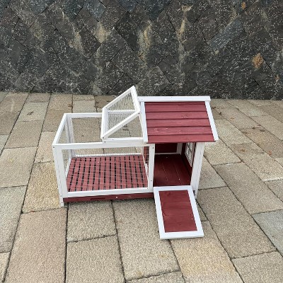 Wooden Rabbit Hutch Indoor Outdoor, Expandable Bunny Cage with Leak-Proof Tray, 2-Story Weatherproof Rabbit House with Anti-Chew Ramp, Rufous White