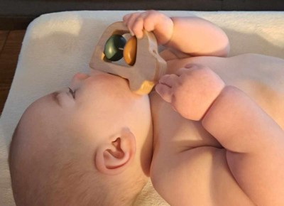 Beautifully crafted wood rattle. If you love hand crafted items, this rattle is for you. Well made with great detailing. The blue color is stunning. Perfect baby shower gift.I received the item as part of a promotion.
