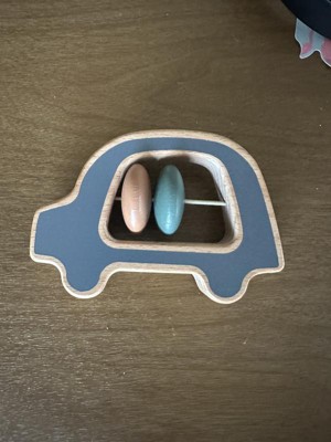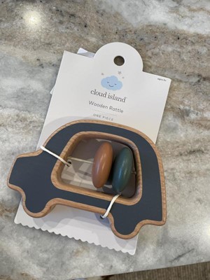 Add a touch of whimsy to your baby's playtime with this Wooden Rattle from Cloud Island™. This baby rattle is designed as a car with a cutout in the center which features two beads that make gentle sounds. Made from wood, this rattle is ideal for auditory stimulation and the development of fine motor skills. Plus, the soft blue, brown, and green colors are sure to delight.