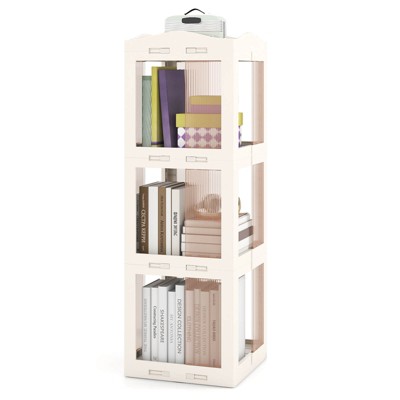 Wooden Rotating Bookshelf, 4 Tier 360 Degree Display, Floor-Standing Bookcase, Multi-Functional Storage Organizer, Suitable for Living Room、Bedroom