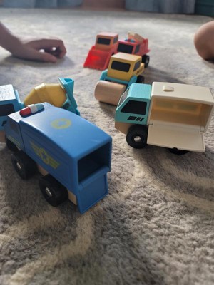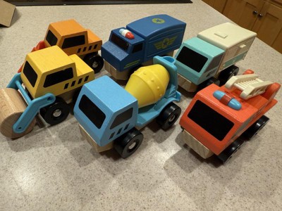 Really cute wooden and plastic trucks. The colors are fun and vibrant. The quality seems durable. I can see these lasting for a really long time. A couple of the trucks have hidden compartments, which are really fun and the kids love. Great affordable quality! Lots of hours of fun to be had!