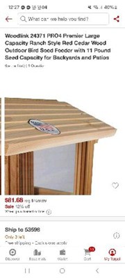 Make the most of your birdwatching leisure in the patio or garden by offering the birds a delightful meal straight from the Woodlink PRO4 Premier Cedar Wood Bird House Feeder. Enjoy watching different kinds of birds flock to this big bird feeder with its large 11-pound mixed seed capacity and a ranch style build.