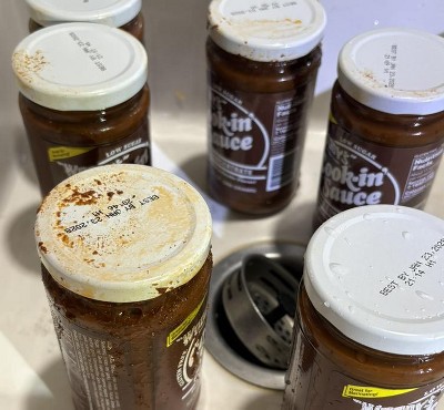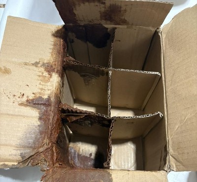Woody’s sauce is wonderful, but this box of six arrived with three of the bottles unsealed, with very loose tops, and sauce leaked all over the inside of the box. The corner of the box with the most leaked sauce had a ton of packing tape on it. There was no protective packaging around the bottles.