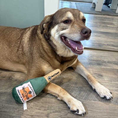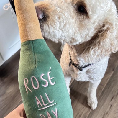 [This review was collected as part of a promotion.] My big sheep, doodle, dog loves getting new toys, especially those that are about this size with a squeaker inside. She was super excited to get this new toy and was happy the second I gave it to her. She immediately started tossing it around and chewing on it and trying to get the squeaker out. I love rosé wine, so this was a fun one to share with her as well. Such a cute idea and love the wording on it for dogs. I received an incentive to write this review.
