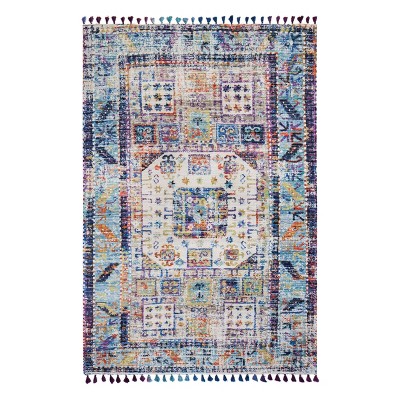 A: Yes, the rug's latex blend backing helps keep it in place, making it suitable for high-traffic areas.