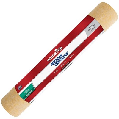 Genuine Wooster replacement part. 18" long roller cover with 3/8" Nap. First choice for value and performance for a production cover; excellent paint pickup and release. Green double-thick polypropylene core resists water, solvents and cracking. Made in the USA.