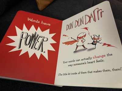 This is a GREAT, encouraging book for little ones to express their feelings. I immediately read this to my two littles and the 3yr old’s take away, “Words are POWERFUL!” The contrast colors (black, white, and red) are reminiscent to the Olivia books. Nice size board book and perfect length for a quick read. Illustration is very engaging (for those that ask additional questions). So, yes, parents add this to your library.