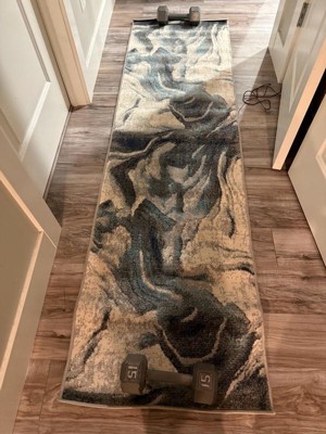 Elevate your living space with our contemporary modern abstract area rug, designed to complement a sleek aesthetic with its marble style in calming blues and neutral ivory. Each step is a plush invitation, thanks to the luxurious pile height of 0.31 inches, enhancing the ambiance of any setting. Beyond its visual appeal, this area rug is built for practicality and ease, boasting spot-clean simplicity and straightforward vacuuming for day-to-day maintenance. Expertly woven from superior polypropylene and supported by a sturdy jute backing, it marries resilience with artistry. Step into comfort with our modern abstract marble-style area rug. It’s not just a decor addition but an upgrade to your home’s comfort and style. Revel in the blend of functionality and sophistication that will leave a lasting impression on your home's aesthetic.