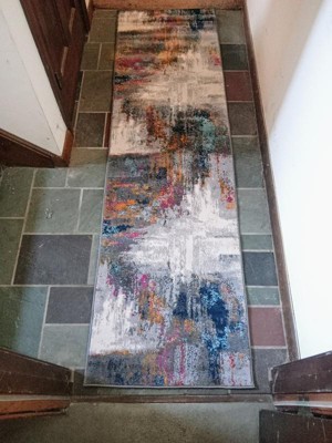[This review was collected as part of a promotion.] I got this 2'x7' World Rug Gallery bari contemporary abstract art area rug a couple weeks ago and fell in love with it the moment I laid it out.It's very well made an is sure to last a long time.I have some slate tile floor which that I put the rug over and it really made the rug stick out.It's sure to draw attention and be a focal point in any room or floor you put it in.