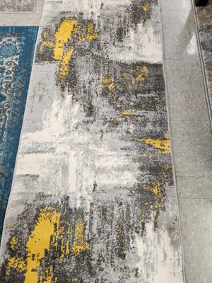 [This review was collected as part of a promotion.] Our new runner is the perfect mix of color and style. With a lot of gray tones in our house this runner matches perfectly. You can see a blend of yellow, gray, white and black all mixed together in a messy yet perfect design.