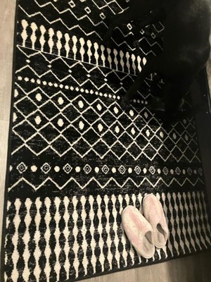 [This review was collected as part of a promotion.] I got the World Rug Gallery Bohemian Trellis Indoor Area Rug in black for my door and I love it. The color is so nice, and the geometric black pattern with ivory adds a modern touch to any room. The rug feels nice and doesn't seem like it will fall apart easily, which is important when you have kids and dogs. I love the aesthetic design, yet looks so nice for any contemporary room.