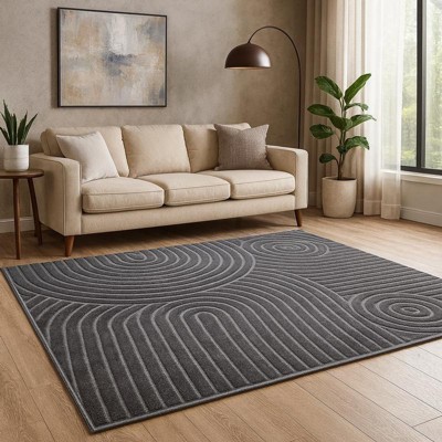 World Rug Gallery Circles Arch Shag Rug – Durable & Soft for High-Traffic Areas – Anthracite Dark Gray – Kid Friendly