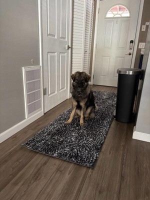 [This review was collected as part of a promotion.] Perfect sized and shaped rug for entry from the kitchen. It is comfy and won’t show dirt easily. The only negative is how slippery it is on the floor. I had to get floor grippers to keep it in place