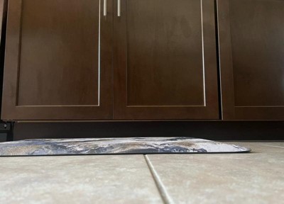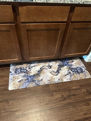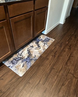 [This review was collected as part of a promotion.] The contemporary abstract Anti-Fatigue Mat looks like marble it matches so well with my decor. I don’t have a dishwasher and I cook everyday. It’s so tiring standing up washing dishes and cleaning your stove after each use. The contemporary abstract marble looking Anti-Fatigue Mat is so low maintenance; it’s easy to vacuum and wipe. It is water repellent and slip resistant. It’s stain and oil resistant as well. I have an 18 x 30 and it fits perfectly under sink area. My feet, legs and back thank you for this mat. I feel so much relief.