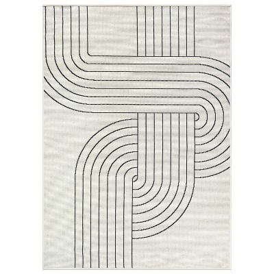Transform your home decor with our modern circles and lines minimalist area rug in striking shades of black, gray, and ivory. This minimalist area rug strikes the perfect balance between comfort and contemporary sophistication. Boasting a plush 0.39-inch pile height, it offers a luxurious underfoot experience, and its easy spot cleaning and vacuuming make maintenance a breeze. Expertly crafted from high-quality polypropylene fibers and complemented by a robust jute backing, this rug guarantees both durability and timeless aesthetic appeal.