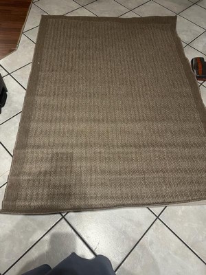 [This review was collected as part of a promotion.] The contemporary bordered weather resistant area rug is a good size for outdoor use. The one problem I have is the rug I received already had a pull in the center of the rug.