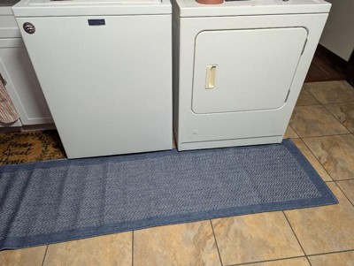 [This review was collected as part of a promotion.] I like this rug a lot! I wanted something indoor/outdoor for my laundry room so it could take a lot of wear, tear, and stains. It's taken a few days to flatten out, but I am happy with the progress so far. My only complaint is that I wish it was gripper on the bottom so I didn't need a rug pad.