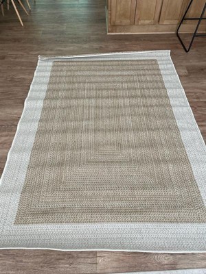 [This review was collected as part of a promotion.] I have been looking for an outdoor rug for this narrow covered porch and this rug is perfect. The best part, it’s truly reversible. Normally there is a tag preventing you from using one side, but not this rug. The tag easily clips off so you can use either side. I don’t know that I would use this indoors because the texture is rough, but it’s great for outdoor use. The one side was rolled pretty tightly but after only an hour unrolled, it was already settling. I don’t have any concerns that the creased side will remain creased. It came packaged well, double plastic wrap to ensure there was no damage. I went with the more beige side, but honestly, it’s neutral enough that either side would have worked. I think the quality of this rug will hold up for quite some time. I’m very much pleased and would recommend to anyone looking for an outdoor rug!