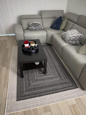 [This review was collected as part of a promotion.] World Rug Gallery partnered with Influenster and send me this 5 x 7 Contemporary Braided Weather Resistant reversible indoor outdoor area rug in exchange for my honest review. My honest review is WOW! The wave this area rug accentuated and brought my whole living space together is honestly remarkable. The color of the rug really brings the whole place together blending in the colors of beige, black and gray that I have going on in my house. I really love the fact that it's weather resistant and you can tell it's weather resistant by touching it because it's very non-porous. We have an outdoor patio/backyard and the fact that this rug is weather resistant makes all the difference for us because sometimes we are outside and our shoes your feet get wet and then we can just go and sit there without having to worry about water or dirt ruining it. The quality really seems incredibly amazing and just yesterday a small bowl of fruit fell on the carpet and I was able to pick it up in two seconds with no mass and no liquid transfer into the rug . The design is very intricate and modern and it really stands out, especially in a living room like mine where I have more of neutral colors going on it really gives it a very nice touch! Thank you for this amazing product. I will continue to enjoy it, and it will continue to accentuate and elevate my living room!!