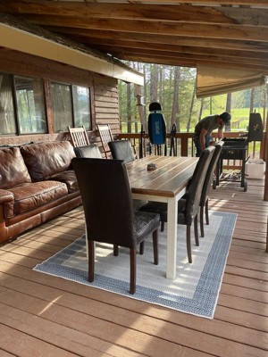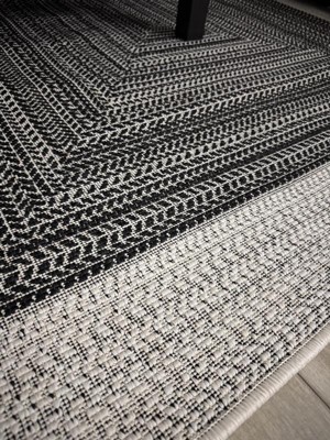 [This review was collected as part of a promotion.] I have been looking for an outdoor rug for this narrow covered porch and this rug is perfect. The best part, it’s truly reversible. Normally there is a tag preventing you from using one side, but not this rug. The tag easily clips off so you can use either side. I don’t know that I would use this indoors because the texture is rough, but it’s great for outdoor use. The one side was rolled pretty tightly but after only an hour unrolled, it was already settling. I don’t have any concerns that the creased side will remain creased. It came packaged well, double plastic wrap to ensure there was no damage. I went with the more beige side, but honestly, it’s neutral enough that either side would have worked. I think the quality of this rug will hold up for quite some time. I’m very much pleased and would recommend to anyone looking for an outdoor rug!